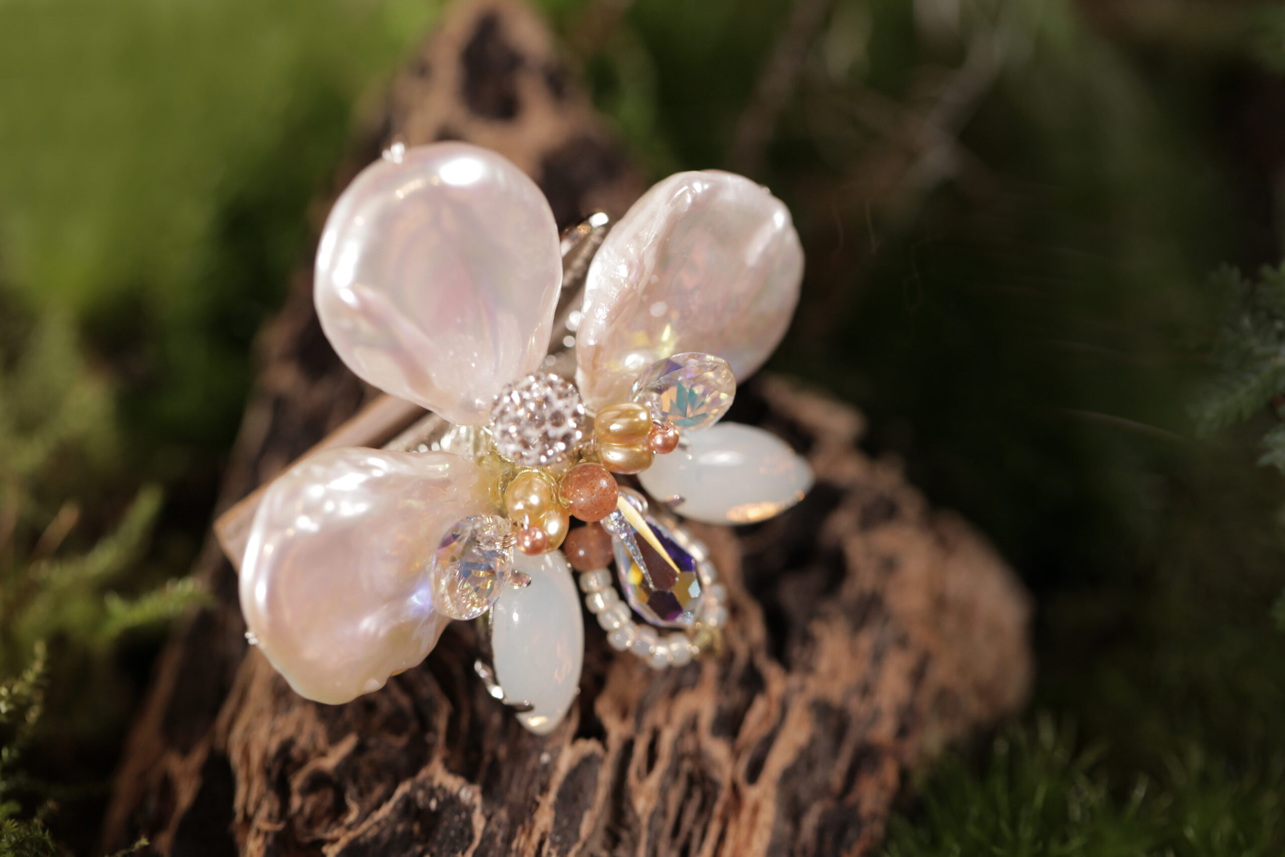 創作材質:蛋白石/淡水珍珠/銀/水晶 尺寸:5x5x2cm