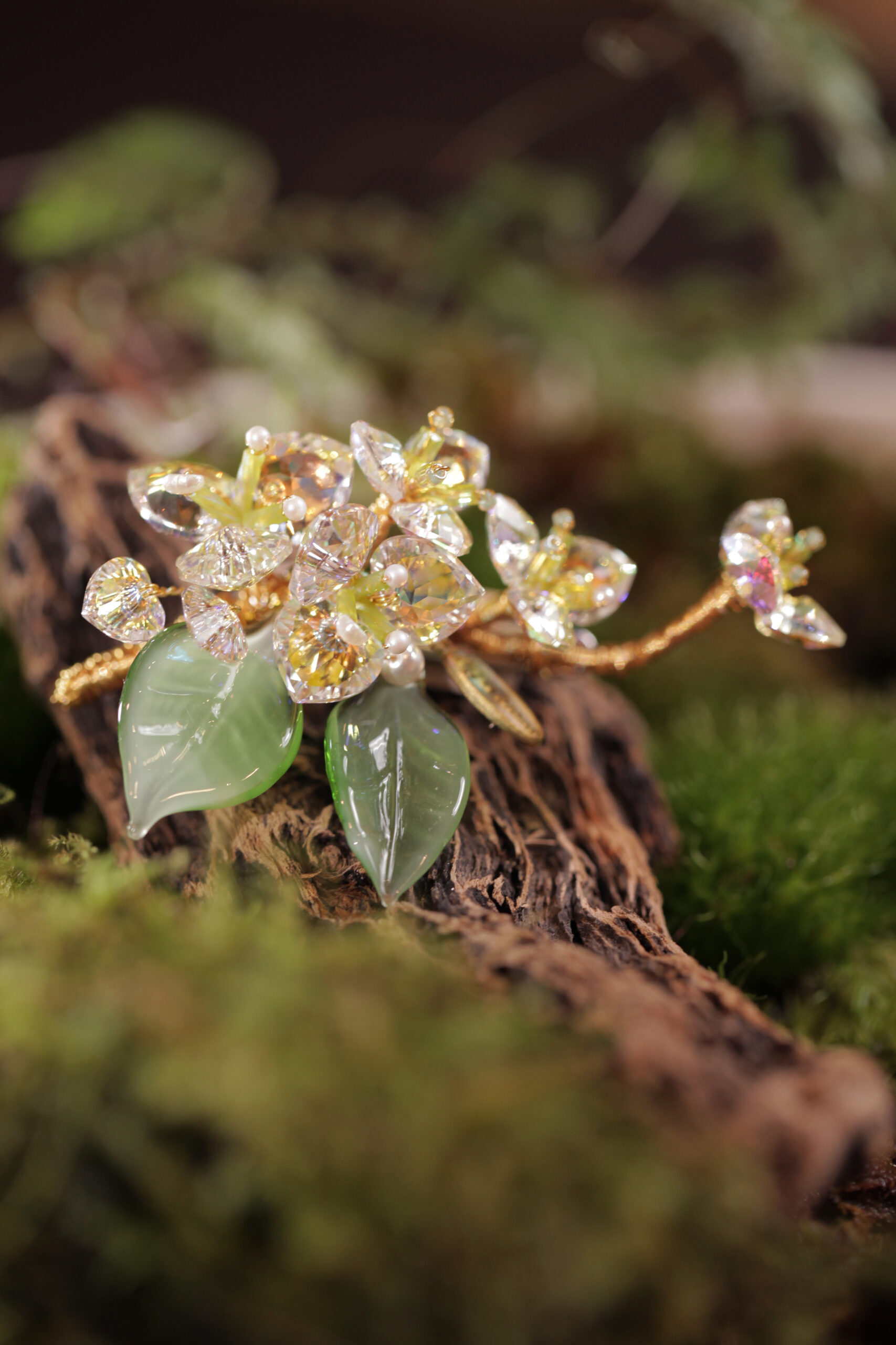 創作材質:施華洛世奇水晶/絲絨布/黃銅/鍍銀銅線