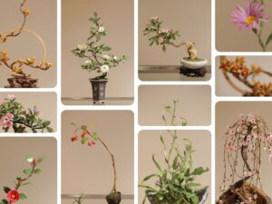 課程特別強調構圖與平衡的練習,透過枝幹、花序、苔蘚與石材等元素的搭配,呈現春日櫻花初綻、落英繽紛的畫面。