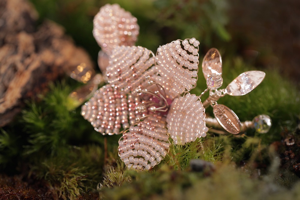 學員將學習不同大小與透明度珠材的編織應用,並透過層次排列打造出富有生命感的花型結構。