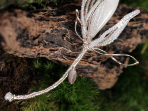 你將學會如何運用金屬線精準排列珠材,模擬玉蘭花的層層花瓣與綻放動態,並透過天然瑪瑙點綴花心與葉片,營造出自然石紋與花卉交融的視覺效果。