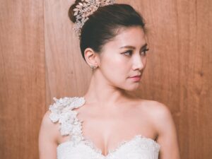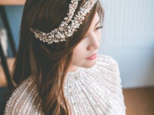 可優雅延展於盤髮頂部或髮髻後方,修飾臉型與整體造型比例。