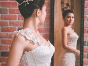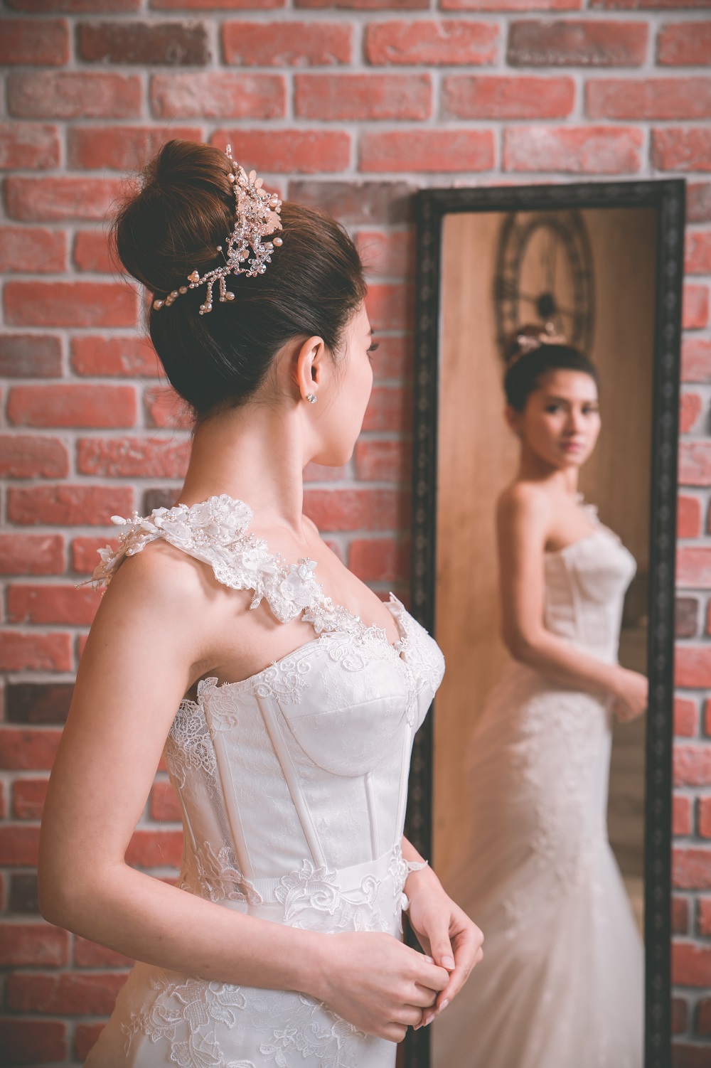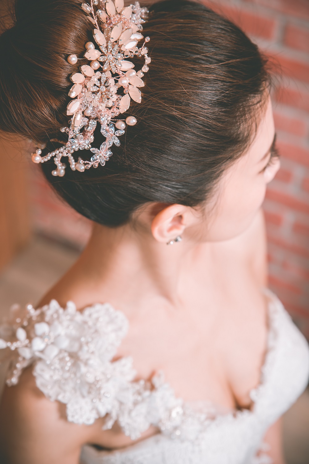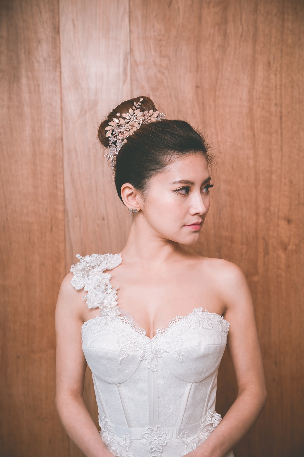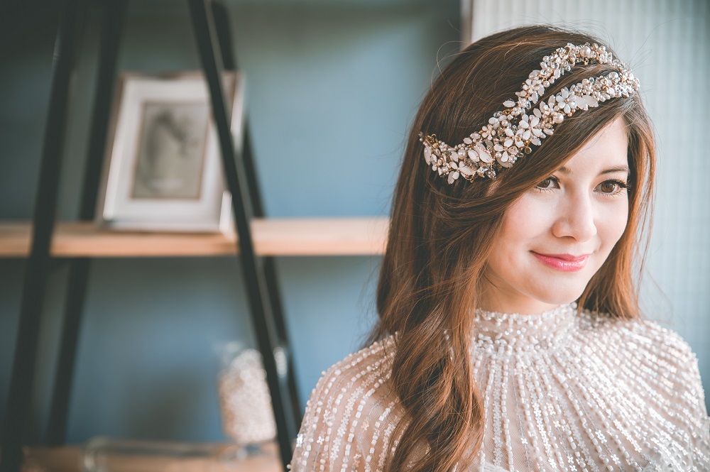 宛如春日微光下花羽映照的倩影,流轉出新娘優雅溫柔的光芒。